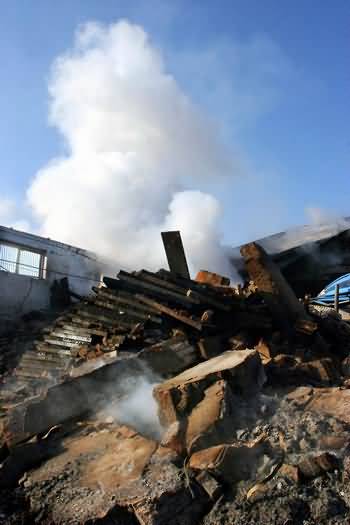 2月4日晨,發(fā)生爆炸的煙花爆竹倉(cāng)庫(kù)仍冒著余煙。
