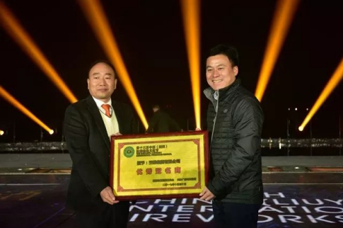 ▲中共瀏陽市委常委、市人民政府常務副市長吳敏為玉蟬集團授牌“優秀冠名商”榮譽稱號