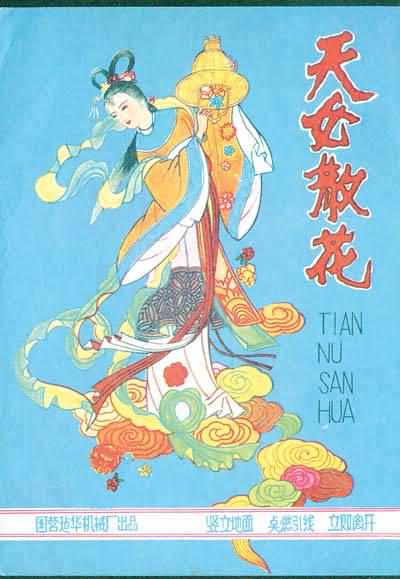 筆者收藏的花標(biāo)中,有一枚由國營建華機械廠出品的“天女散花”花標(biāo),圖案靚麗大方,描繪了一位手拿花籃立在彩云之上的天女,她正把花籃里的鮮花向地面撒去。圖案既對應(yīng)了花炮牌號,又給人以“春天來了”的遐想。該花標(biāo)下方還寫有“豎立地面,點燃引線,立即離開”的警示語,時刻提醒人們,在高興之余勿忘安全。