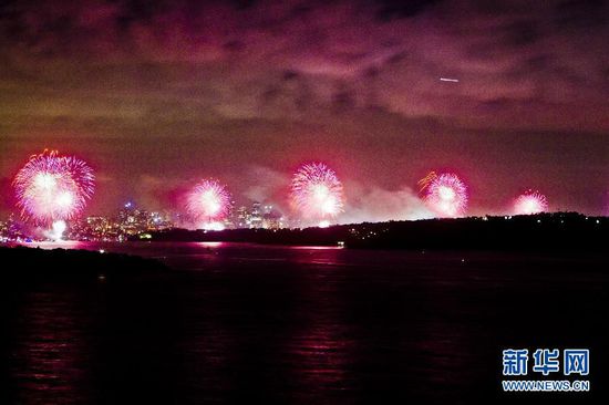 2015年1月1日,在澳大利亞悉尼,迎接新年的焰火從海灣燃放升空。當(dāng)日,約150萬市民和游客前往悉尼各主要景點,辭舊迎新。新華社記者 金林鵬 攝