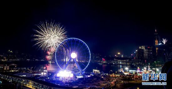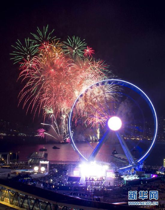 2015年1月1日零時,香港維多利亞港舉行煙火匯演迎接2015年。新華社記者 呂小煒攝