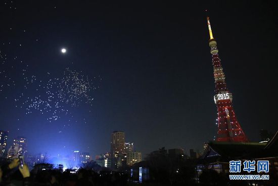1月1日,日本東京鐵塔亮起燈光,慶祝2015年的到來。新年是日本重要的節(jié)日之一。除觀看煙花表演和參加篝火晚會外,許多日本民眾還會前往附近寺廟,祈求健康和快樂。 新華社記者劉天攝