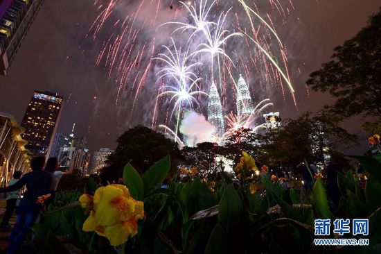 12月31日晚,馬來西亞吉隆坡雙子塔燃放煙火,迎接2015年的到來。 新華社發(fā)(張紋綜攝)