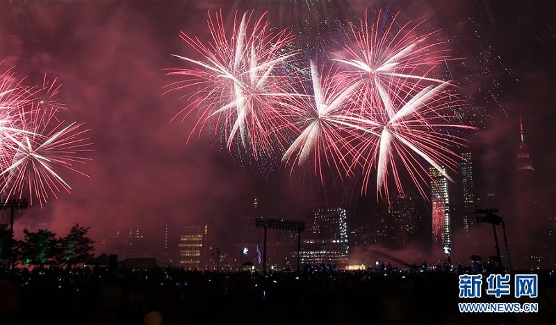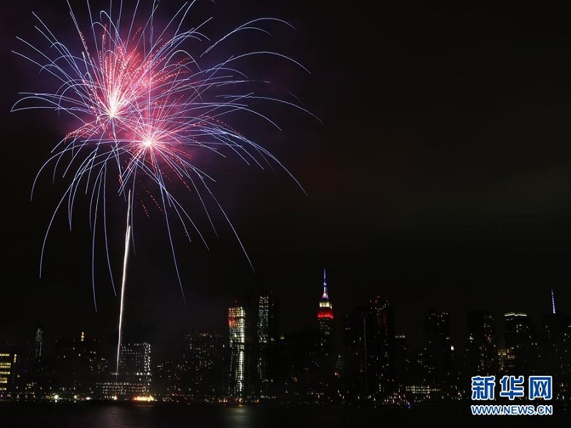 7月4日,焰火綻放在美國紐約城市夜空。當天是美國獨立日。 新華社記者 秦朗 攝