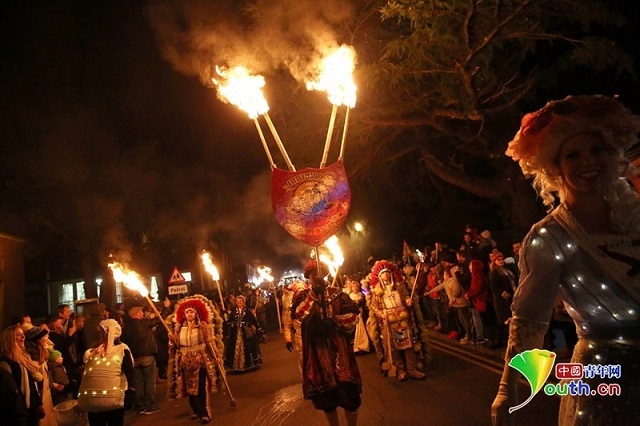 篝火晚會(huì)游行的隊(duì)伍。圖片作者:視覺(jué)中國(guó)
