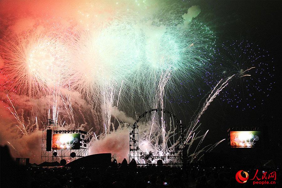 當(dāng)?shù)貢r間7月22日晚,韓國江原道春川,韓國舉行煙花慶典,紀(jì)念2018平昌冬奧會開幕進(jìn)入200天倒計時。 陳尚文攝