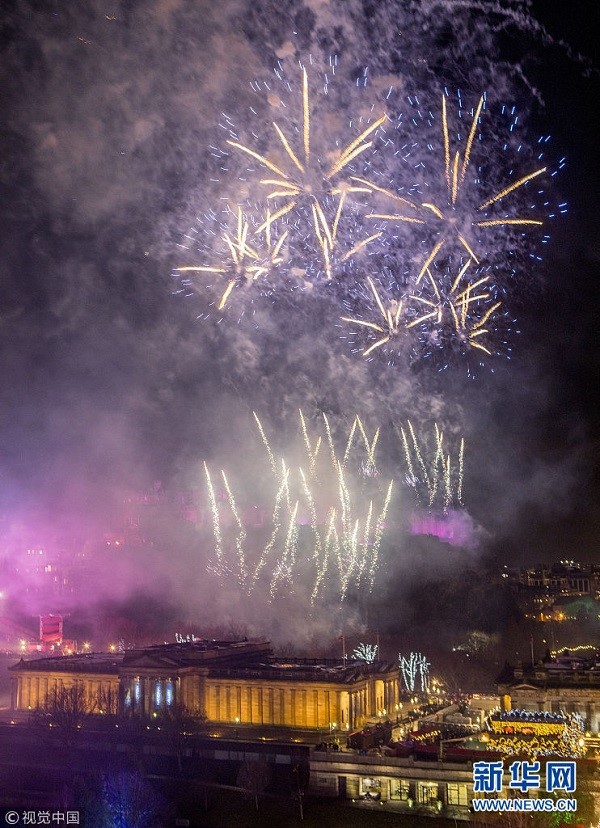 當?shù)貢r間2017年12月31日,英國愛丁堡,當?shù)厝挤艧熁☉c祝新年到來。