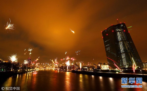 當?shù)貢r間2018年1月1日,德國法蘭克福,當?shù)厝挤艧熁☉c祝新年到來。