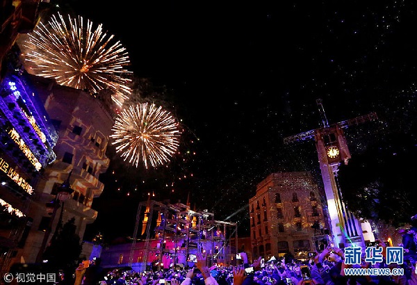 當?shù)貢r間2018年1月1日,黎巴嫩貝魯特,當?shù)厝挤艧熁☉c祝新年到來。