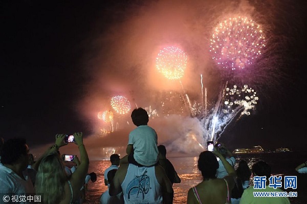 當?shù)貢r間2018年1月1日,巴西里約熱內(nèi)盧,當?shù)厝挤艧熁☉c祝新年到來。
