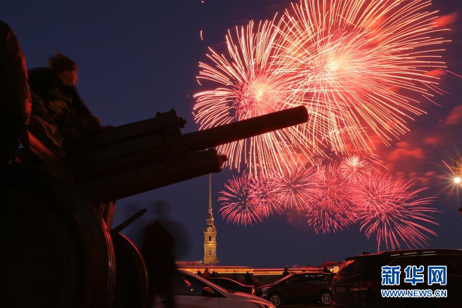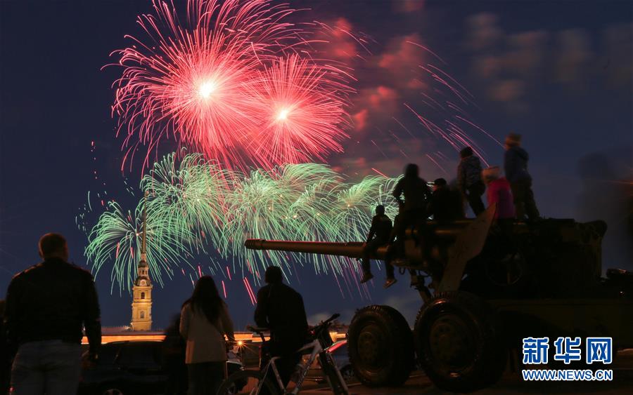 5月9日,俄羅斯圣彼得堡燃放煙花,紀(jì)念衛(wèi)國戰(zhàn)爭(zhēng)勝利73周年。 新華社發(fā)(莫京娜 攝)