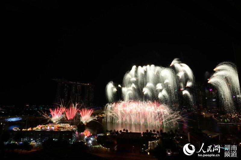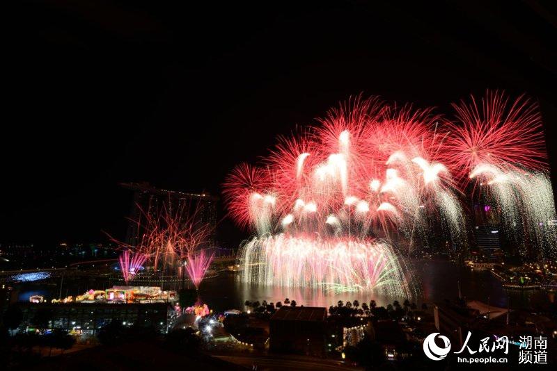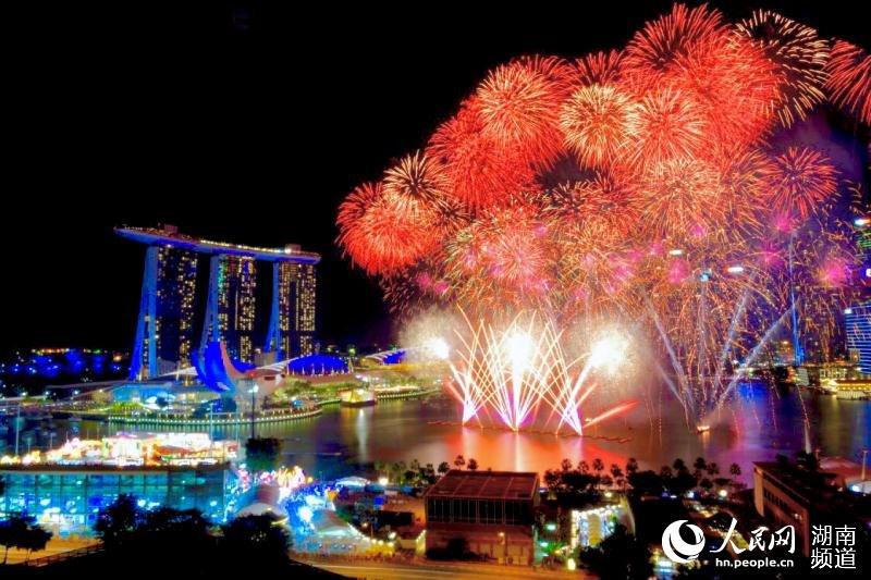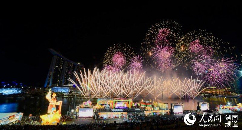 人民網長沙2月11日電 (林洛頫 陳玲) 絢麗多彩的煙花沖上天空綻放,瞬間照亮了新加坡的夜空。2月10日晚,一年一度的新加坡“春到河畔”圓滿落幕,此次為紀念新加坡開埠200周年,“春到河畔2019”呈獻33年來規模最盛大的焰火匯演。